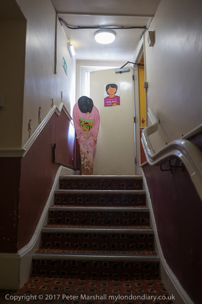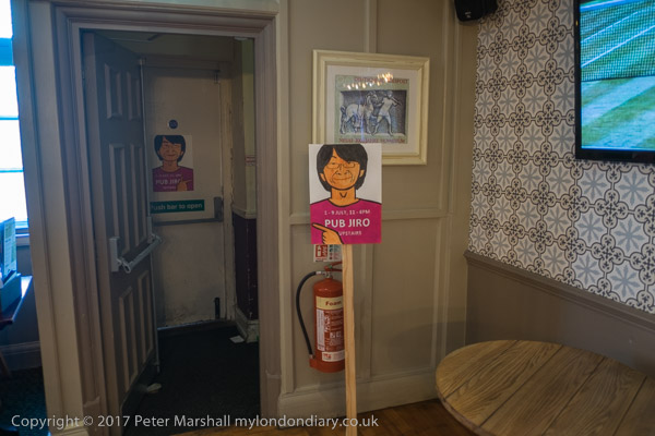 The entrance to the stairs from the bar had a notice for Pub Jiro