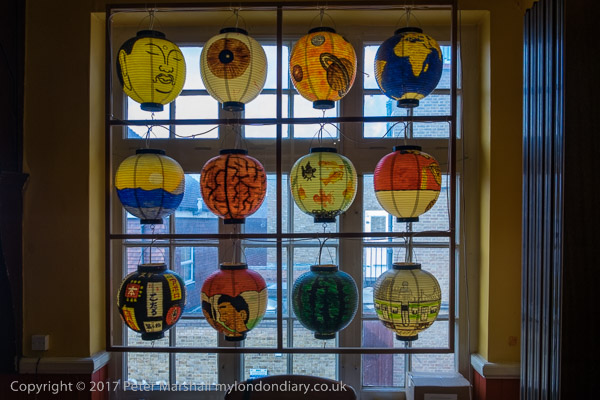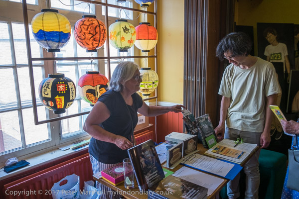 Japanese lanterns and the bookstall - with copies of 'The Streatham