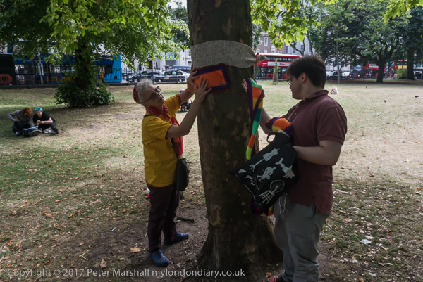 People were gathering for a meeting abot the trees and HS2 but I decided