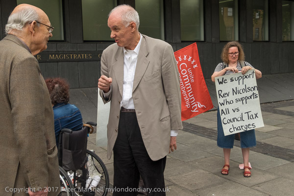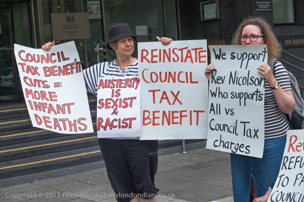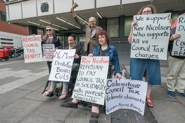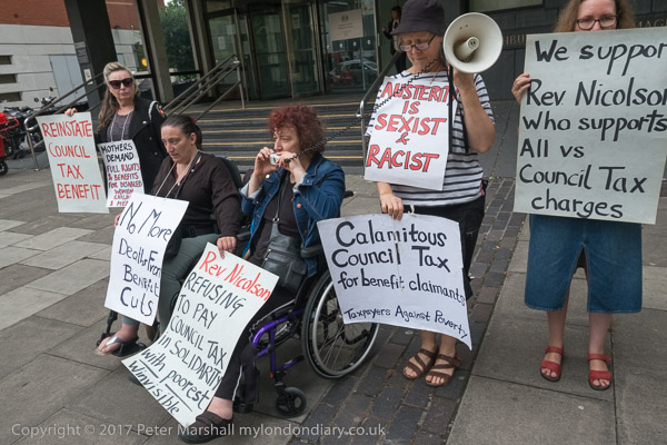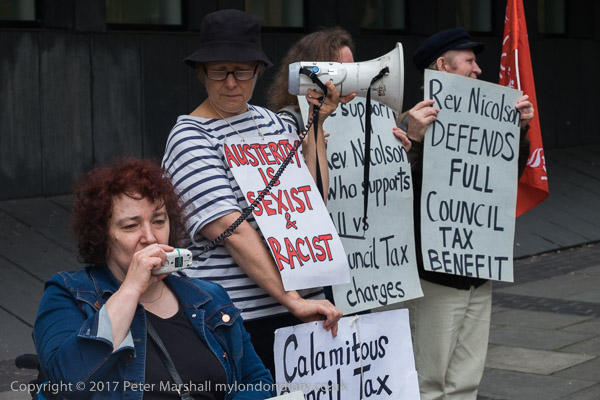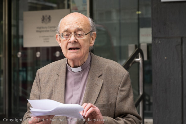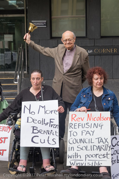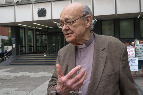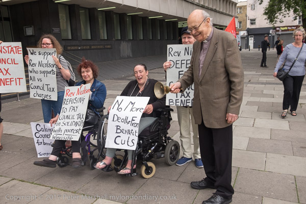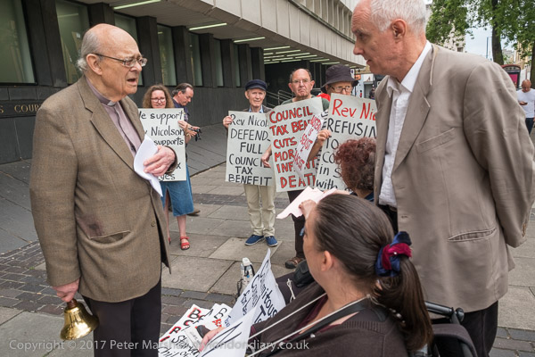 Rev Paul Nicolson of Taxpayers Against Poverty reads a speech