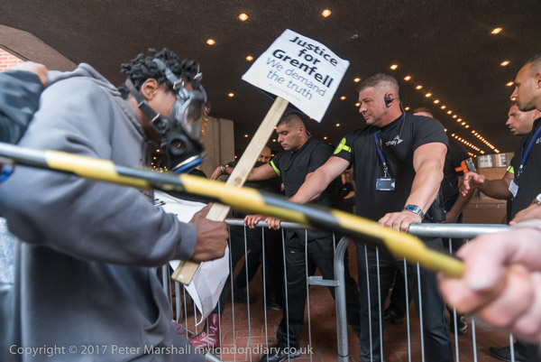 They hold 'Justice for Grenfell' placards