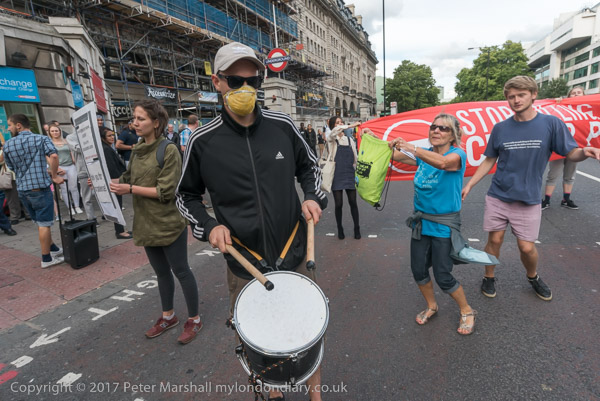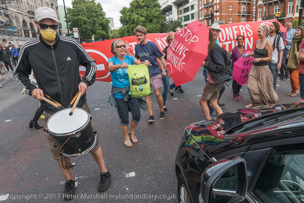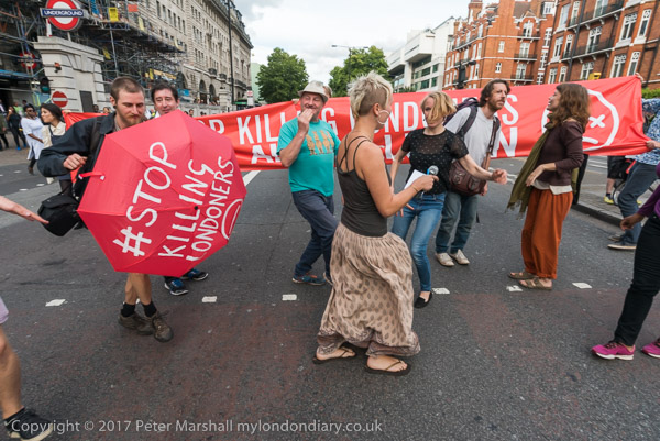 Some have umbrellas with the message 'Still Killing Londoners - and