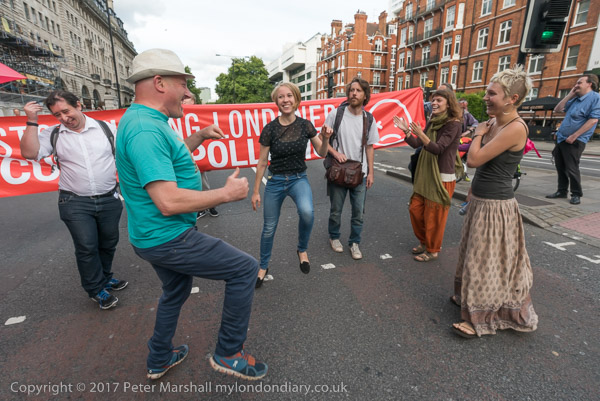 as the protesters hold a short dance