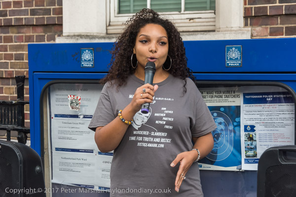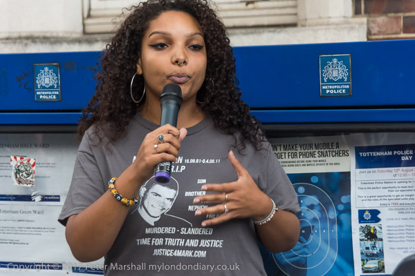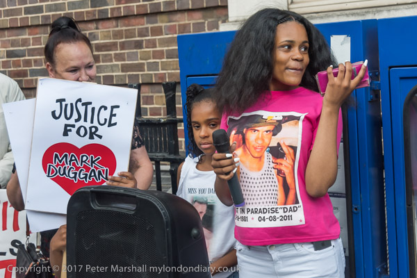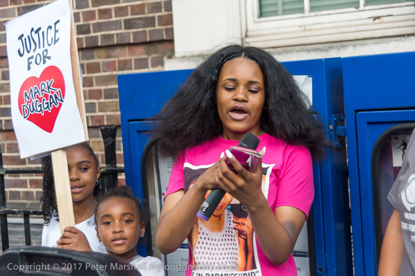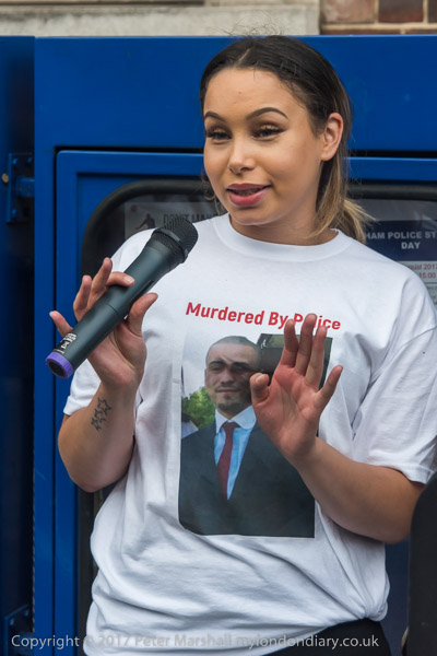 Mark Duggan's daughter speaks at the rally at Tottenham Police Station