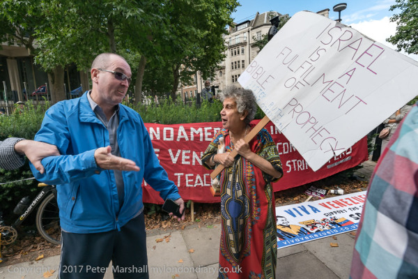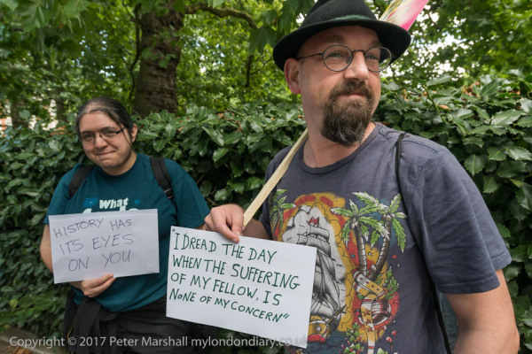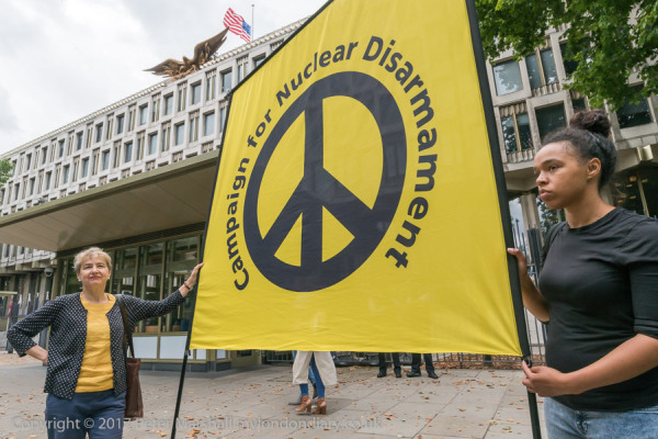 THe protesters held up placards at the US Embassy