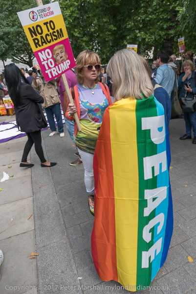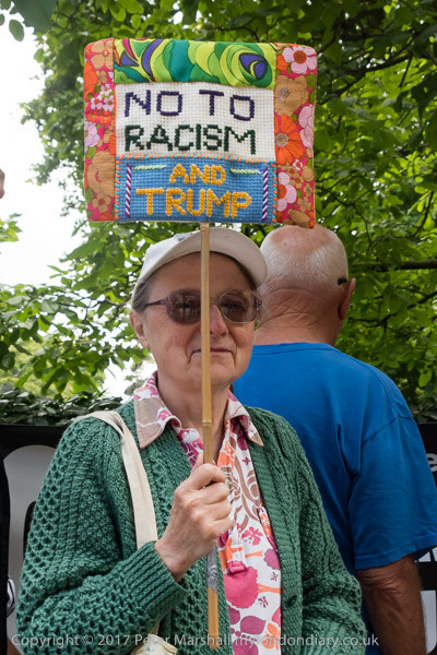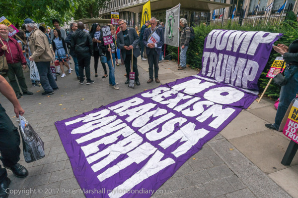 The largest banner at t he protest 'Dump Trump - No Sexism Racism