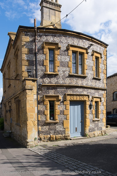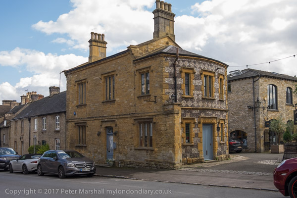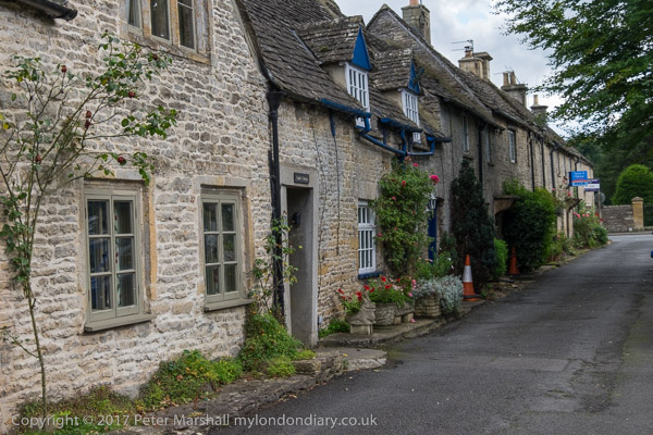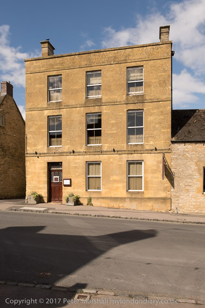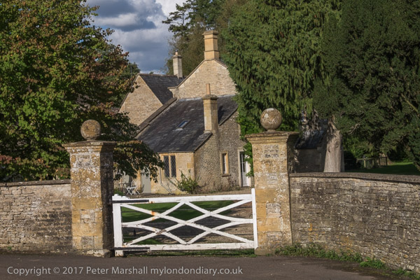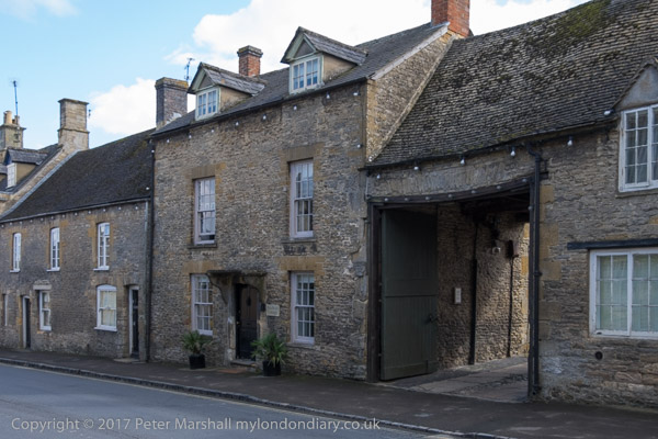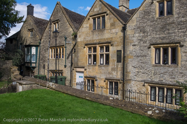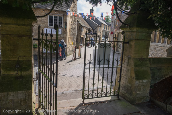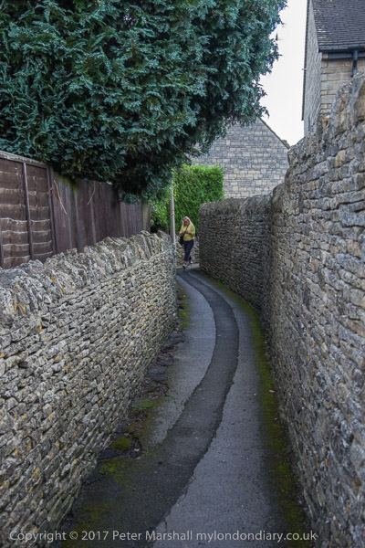 Bakcs of houses along an alley next to Stow-on-the-Wold churchyard