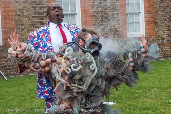 The UK is the world's second largest arms exporter after the USA. This was the first of a series of performances at six venues around central London is timed to coincide with the DSEI arms fair. more pictures