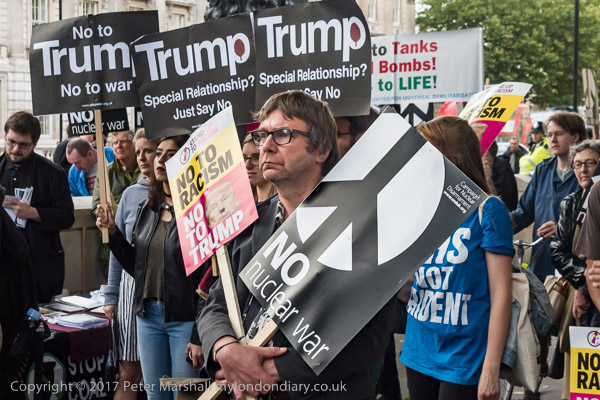 Stop the War Coalition and Campaign for Nuclear Disarmament held a 'No Nuclear War over North Korea' rally at Downing St.