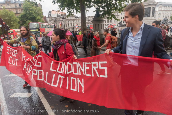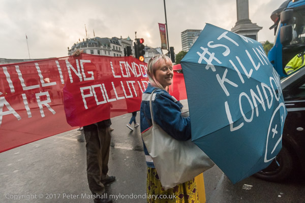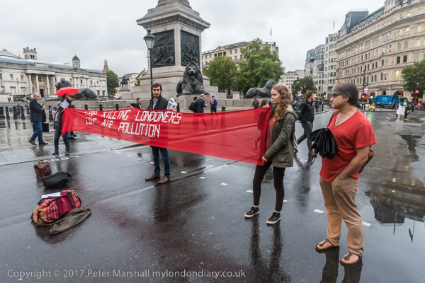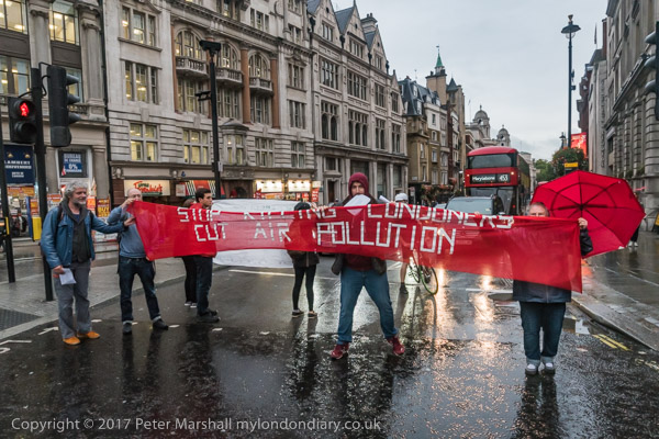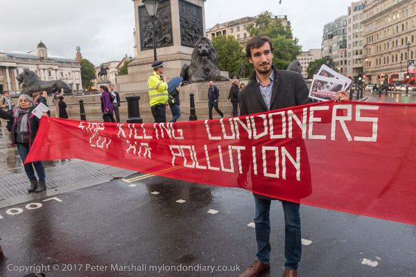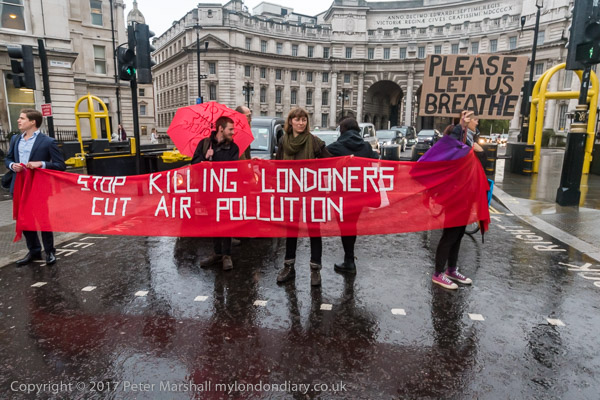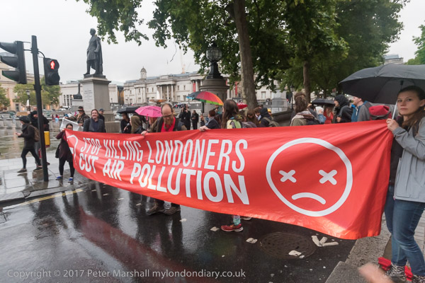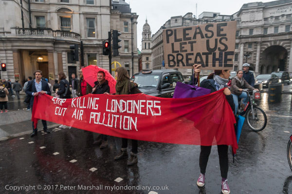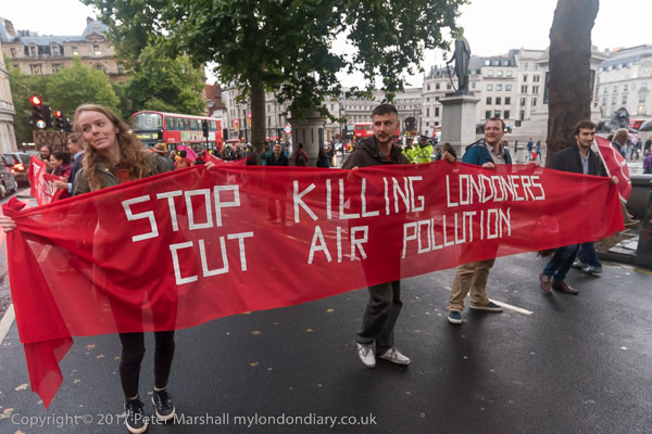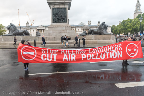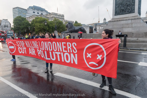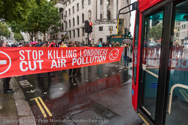 The banners say 'Stop Killing Londoners - Cut Air Pollution' and smaller