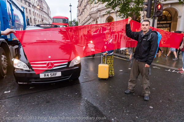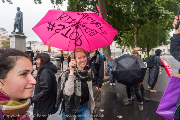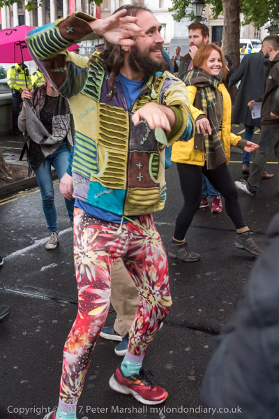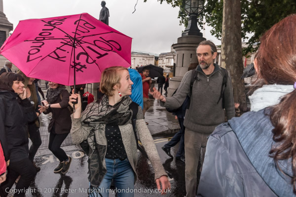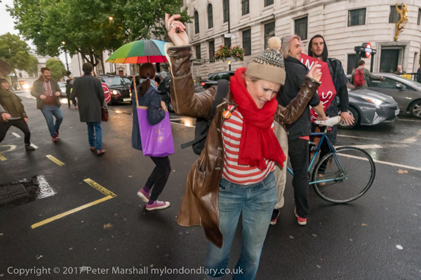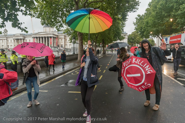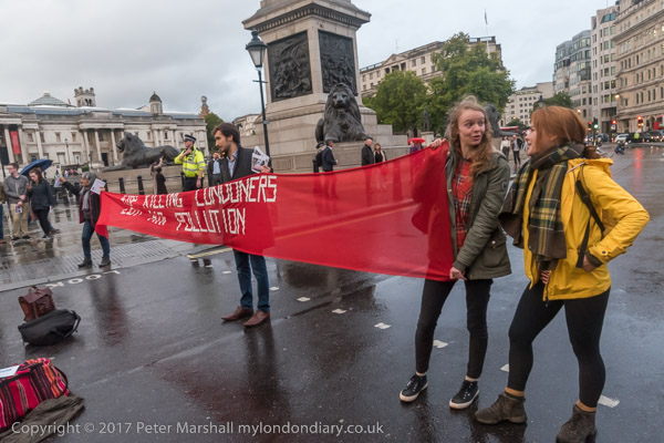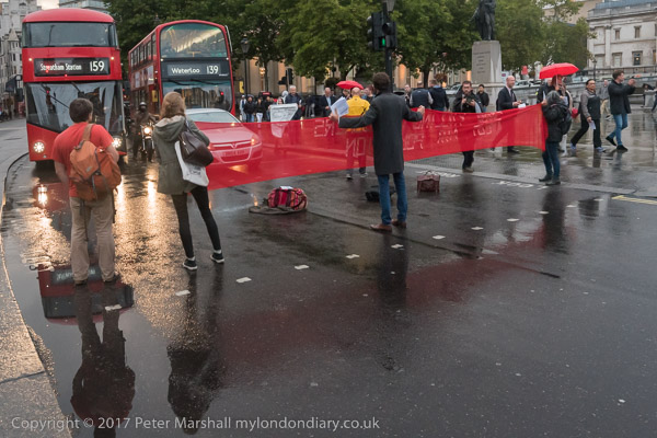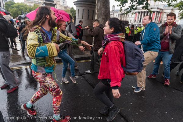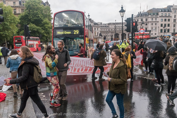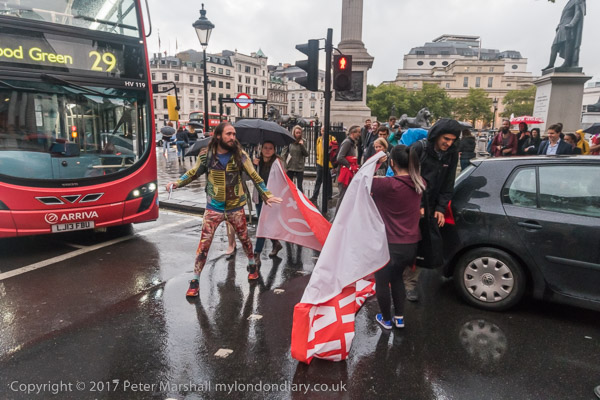 the protesters left the road and gathered on Trafalgar Square for a few
