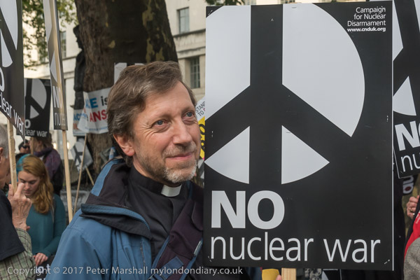 Protesters from Pax Christi included Bruce Kent