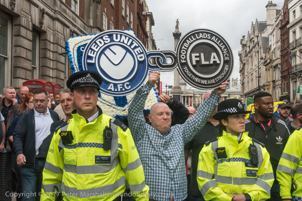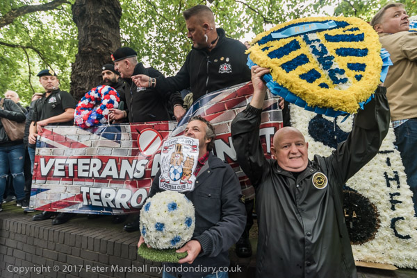 Football Lads Alliance and Veterans Against Terrorism rally in Park Lane before marching to Westminster Bridge with wreaths representing clubs large and small around the country.