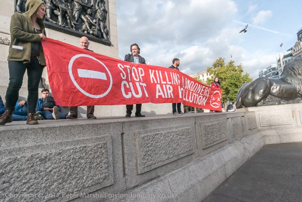 'Stop Killing Londoners: Cut Air Pollution' campaigners pose in Trafalgar Square on a day of protests in some of London's most polluted streets.