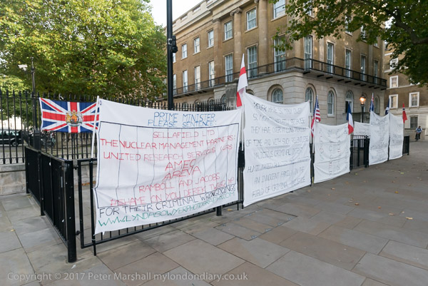 A well-prepared protest that I rushed past on my way to catch the Underground opposite Downing St.