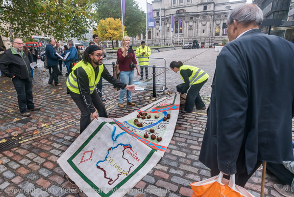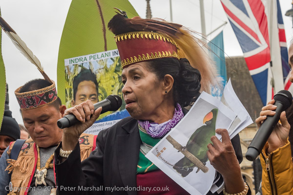 Guardians of the Forest, indigenous leaders from Latin America, Indonesia and Africa, hold a rally in Parliament Square to commemorate those who have lost their lives defending the forests against mining, the cutting down of forests for palm oil production and other crops and other threats to the forests and those who live in them.