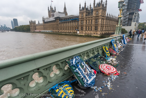 Some of the FLA attempted to stop the abuse and threats, and police pushed a number of marchers back into the crowd attempting to keep order. But a large group of the marchers stopped and clearly wanted to take on the counter-protest. There were a few minor scuffles as police tried to keep them away and at least one photographer was assaulted before police reinforcements arrived and eventually persuaded the last FLA marchers to move on towards Westminster Bridge, where the wreaths some were carrying were to be laid.
