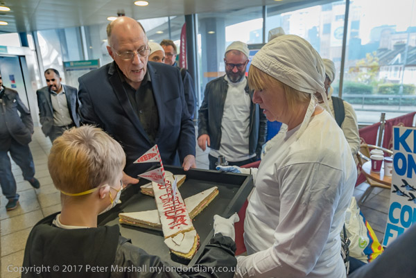 Campaigners dressed as bakers delivered a birthday cake to London City Airport on its 30th anniversary demanding they retain the cap on flights, have no further expansion and end the use of concentrated flight paths.