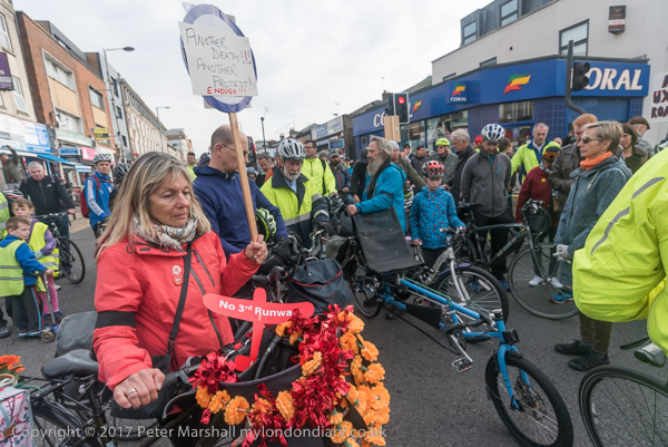 A message was read from her father, and there were short speeches from a London Cycling Campaign representative and one of the event organisers, as well as from Ealing Council leader Julian Bell who was loudly heckled over the council's record on making this and other roads safe; he insisted Ealing under Labour was one of the most cycle-friendly councils in the country, but clearly the feeling of those present was that a much more urgent approach was needed, particularly over Uxbridge Rd.