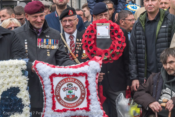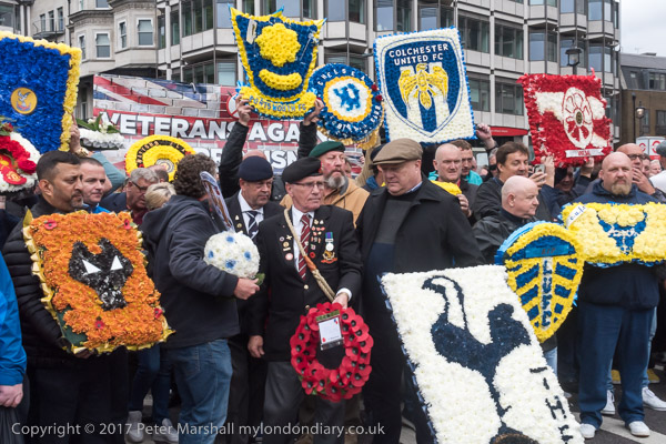 People line up with wreths for the start of the march