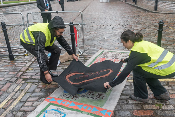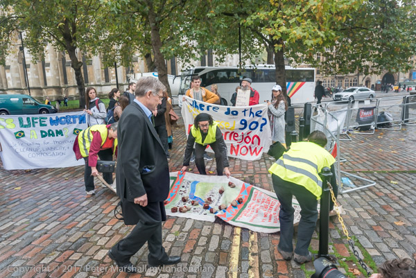 Another man walks past as campaigners apologise and move the Cerrejon
