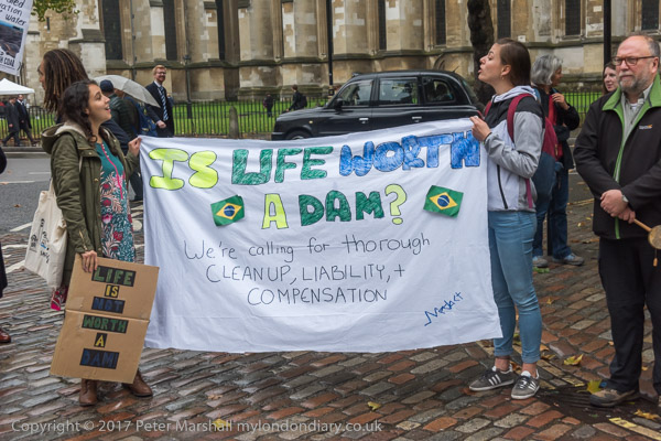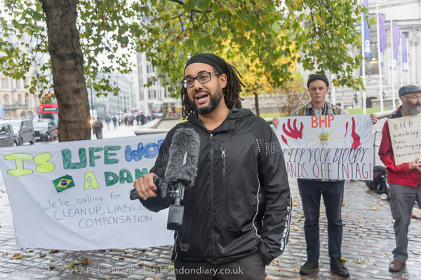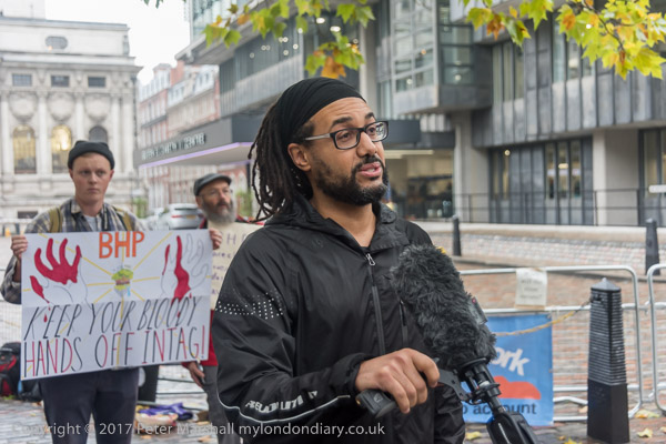 BHP is being held with a placard: