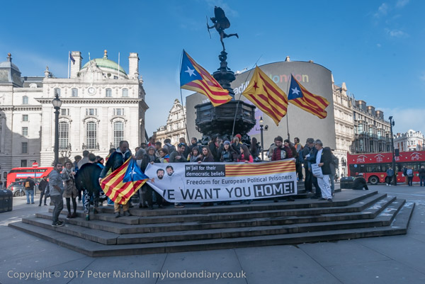 THe marchers were gathering around Eros in Piccadilly Circus