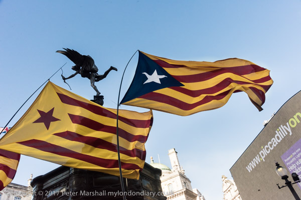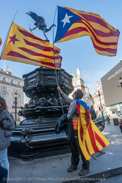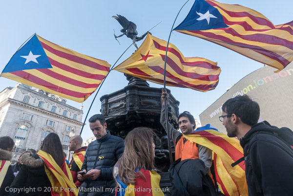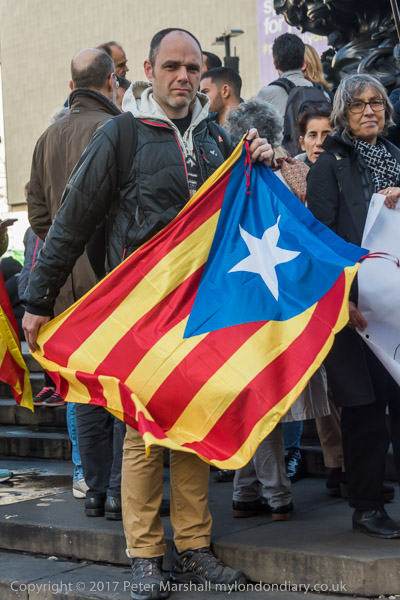 Many held flags for an independent Catalonia - the red star is for