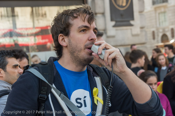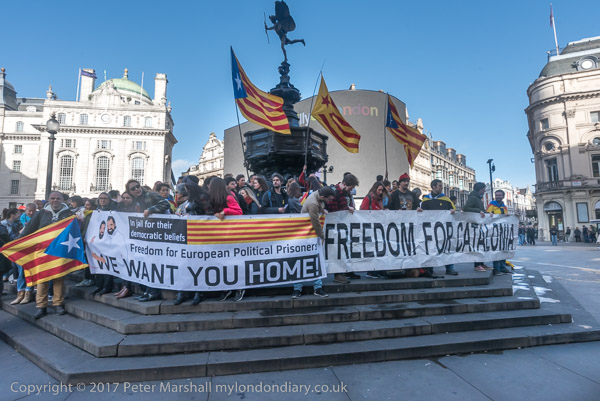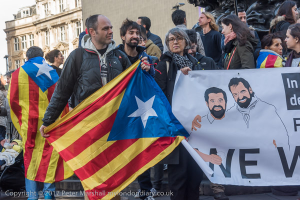 The main banner showed the two imprisoned Catalan politicians Jordi