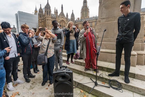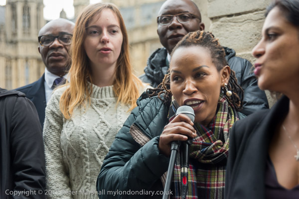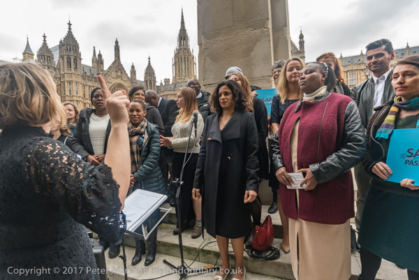 Baptist minister Juliet Kilpin introduces the Safe Passage rally