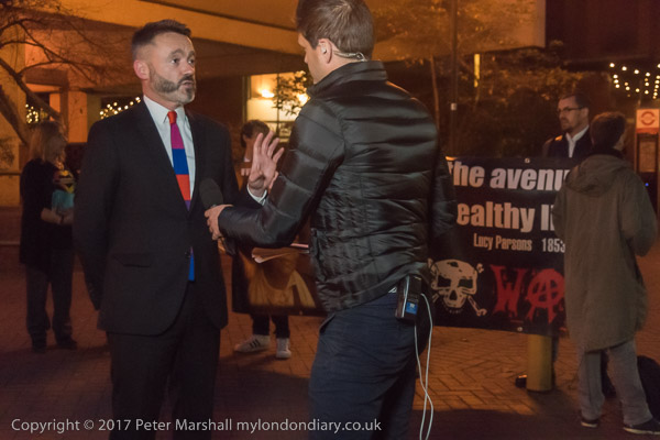 Labour Councillor Robert Thompson is interviewed for TV in front of