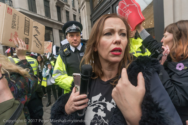 Protesters handed out a flier with the message 'Cruelty in Every Stitch'