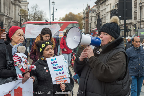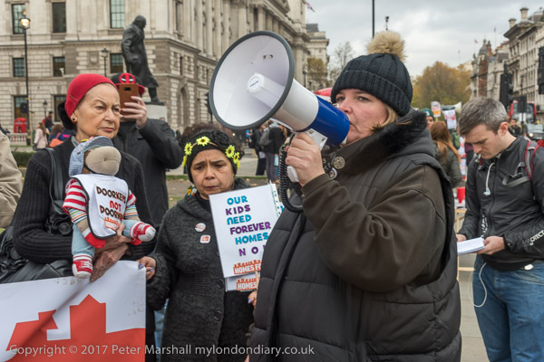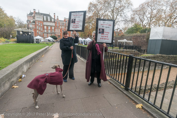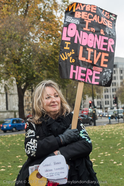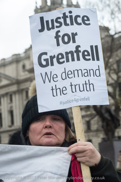 Paula Peters with a #justice4grenfell poster. A few yards away another