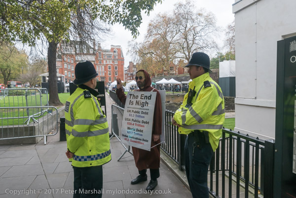 And a man warns 'The End is Nigh'. Police question him briefly and