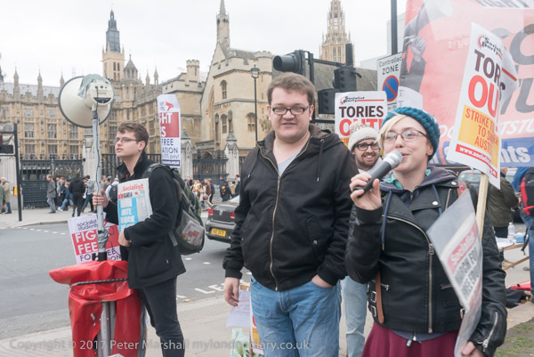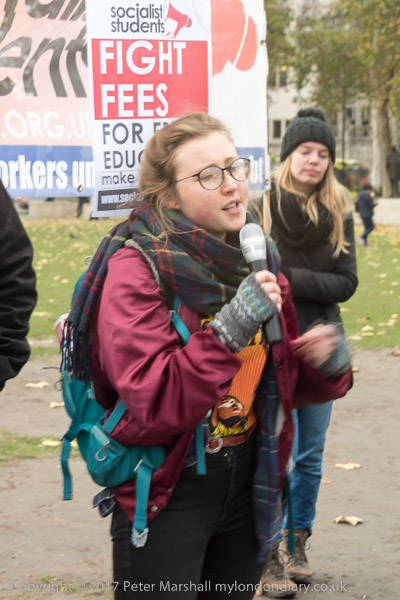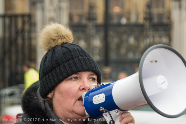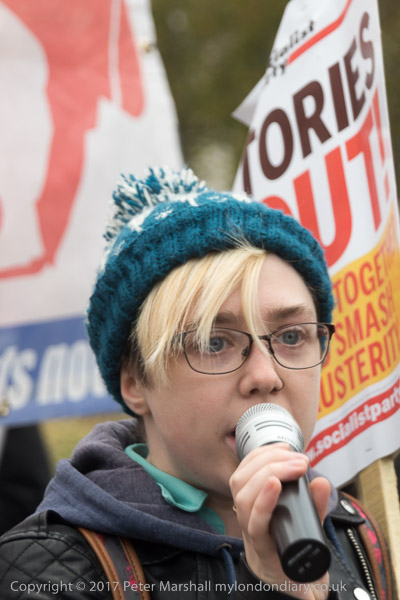 Paula Peters from DPAC speaks. The government have targeted cuts on