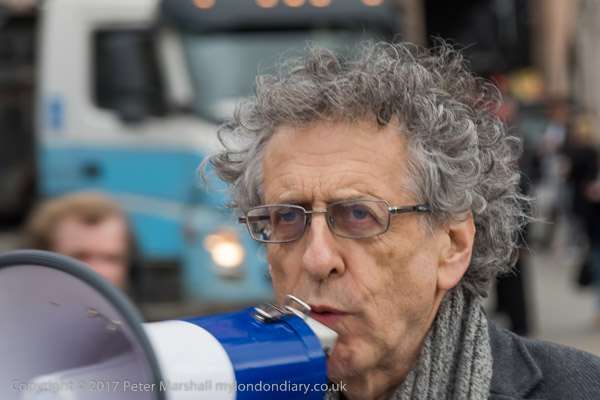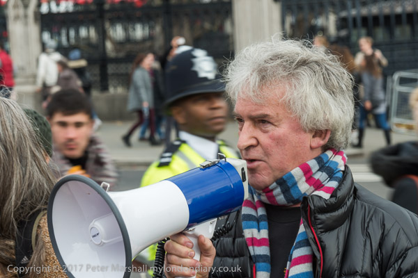 Piers Corbyn holds up his information sheet about the fight for geniunely