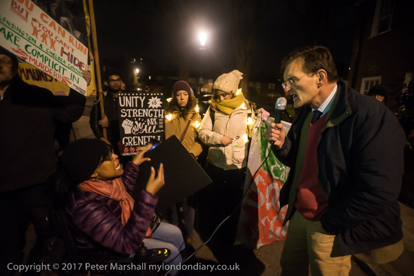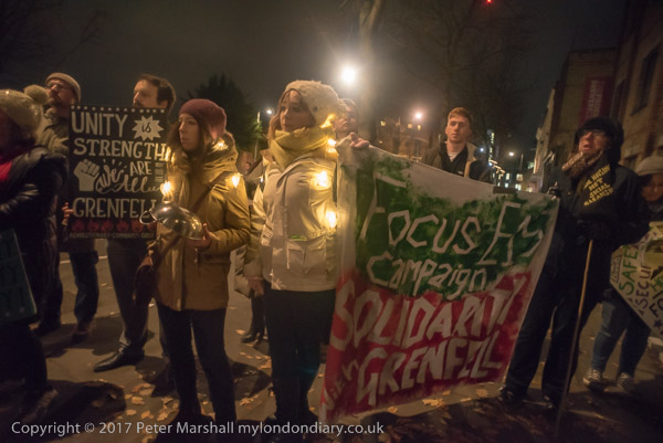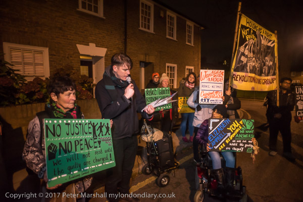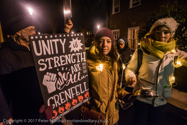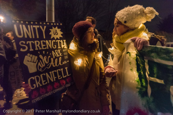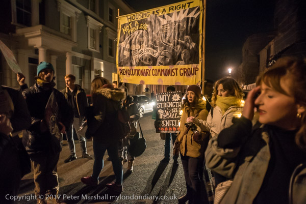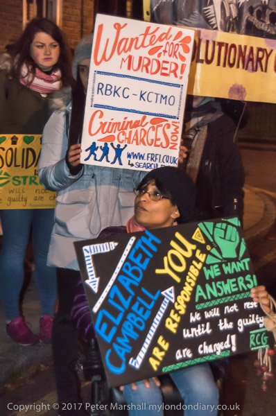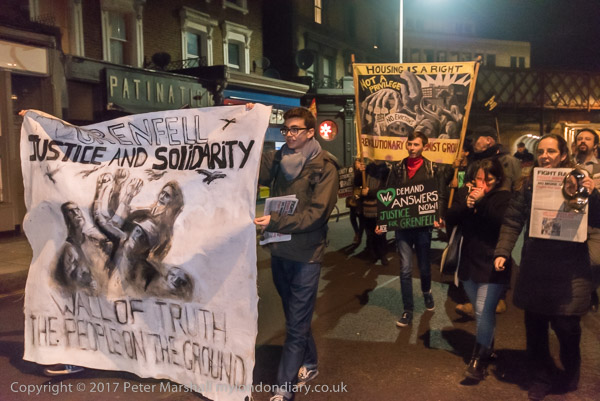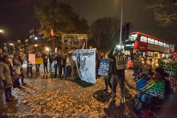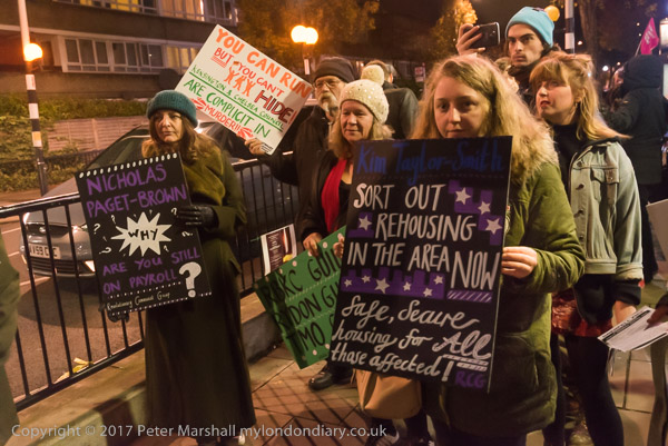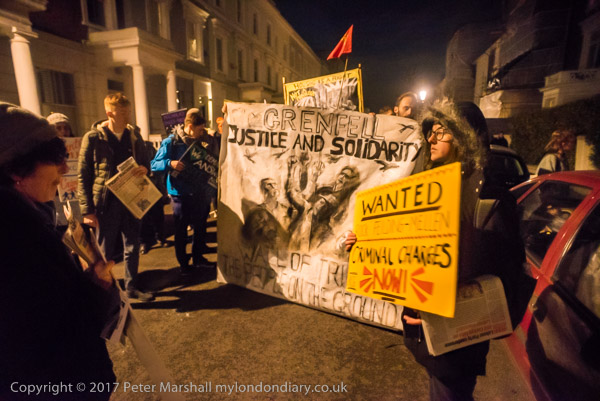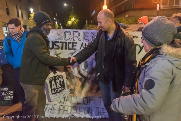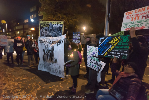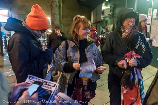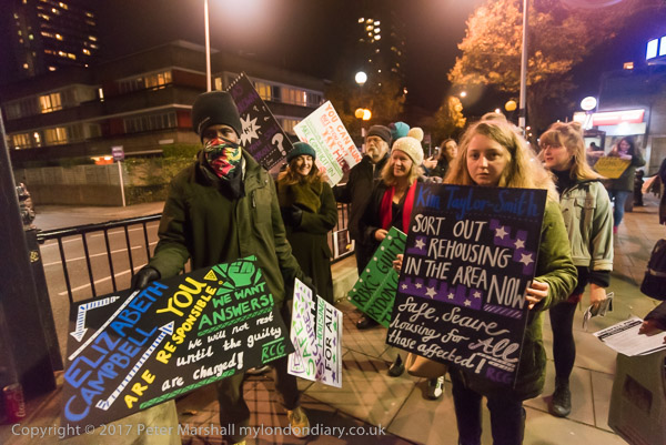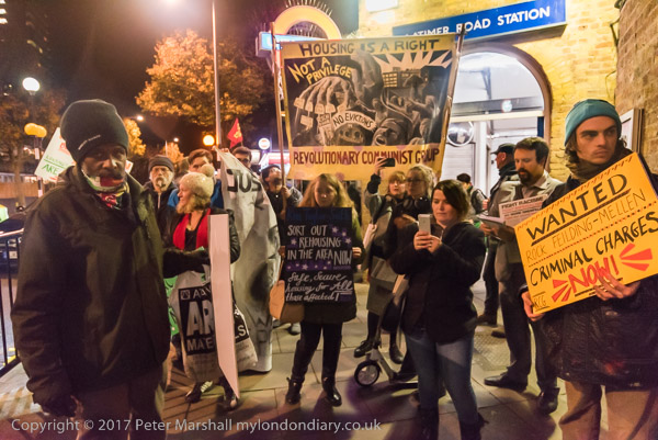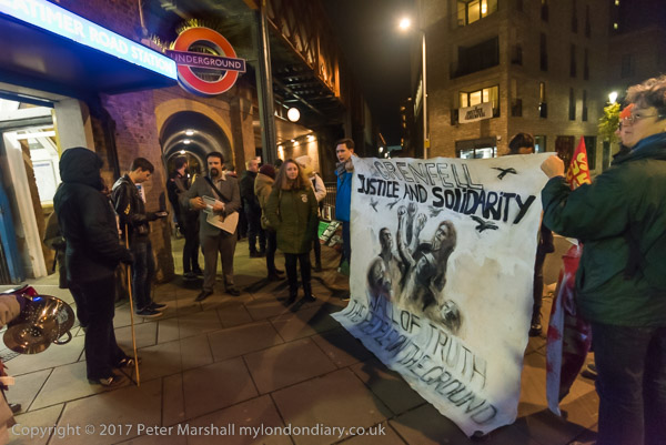 Camaigners meet outside Latimer Road station, close to Grenfell Tower,
