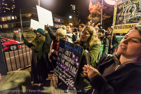 and Cllr Lindsay comes out and tries to answer the protesters' questions
