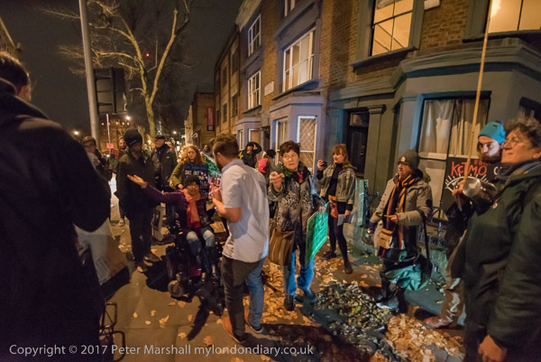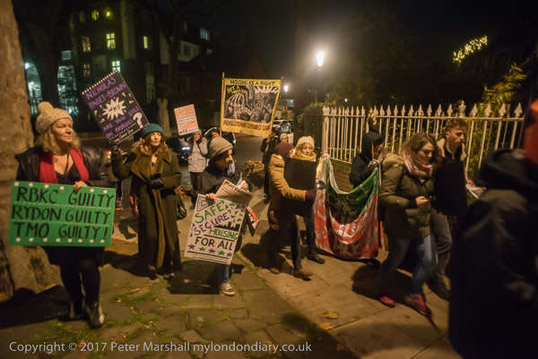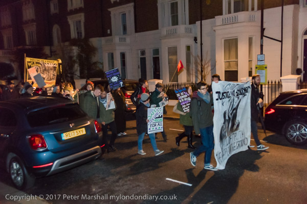 The protesters march down Bramley Road to Councillor Rock Feilding-Mellen's
