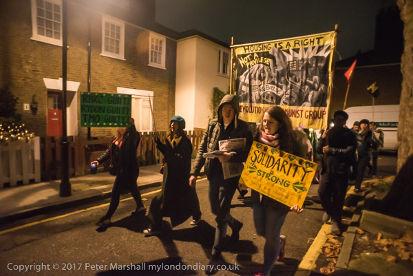 The marchers reach the street where Cllr David Lindsay