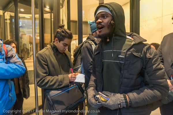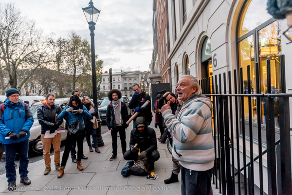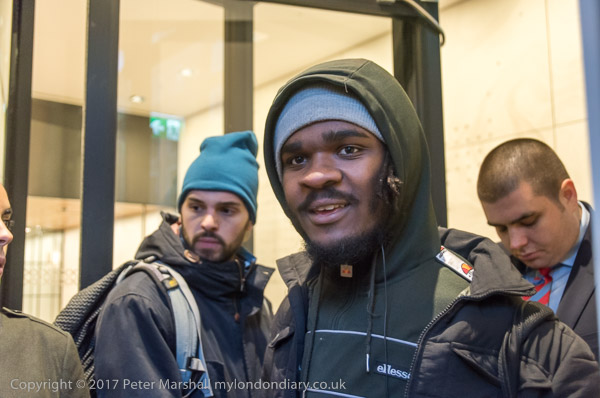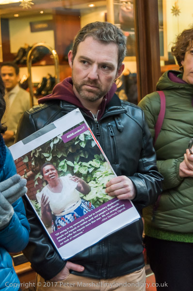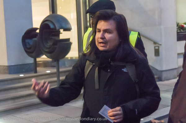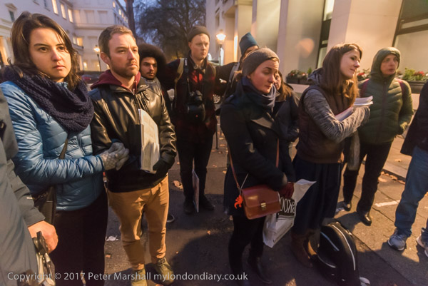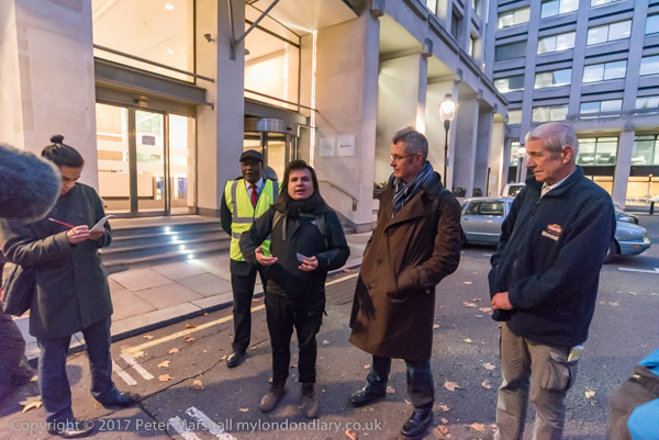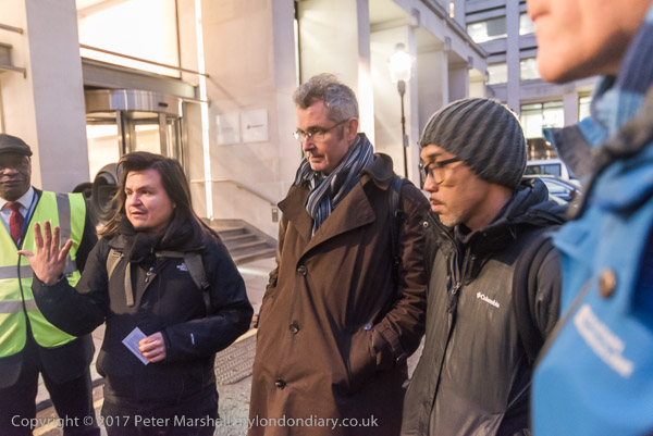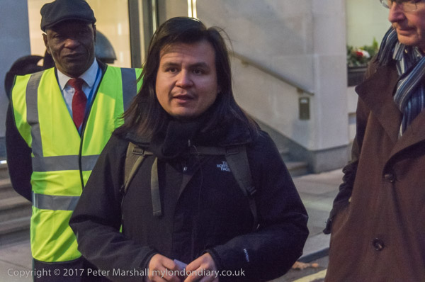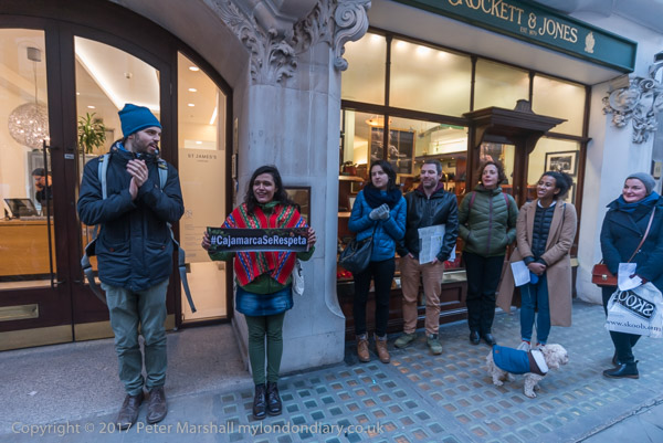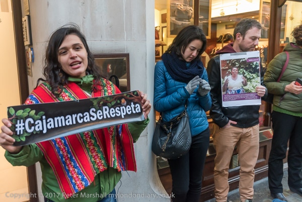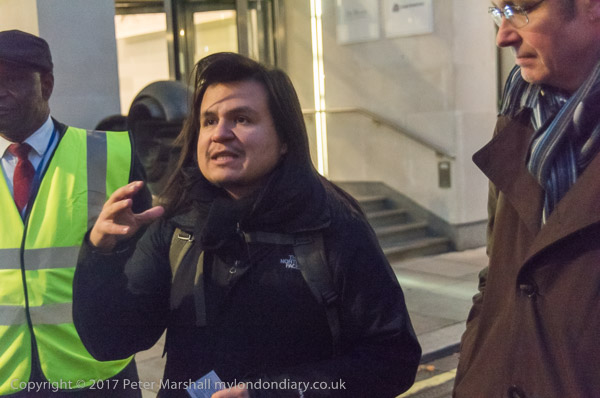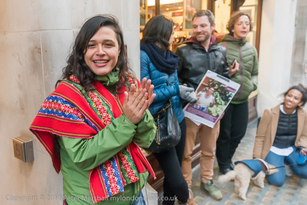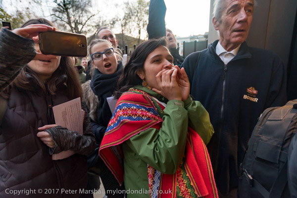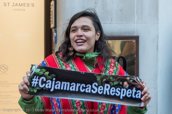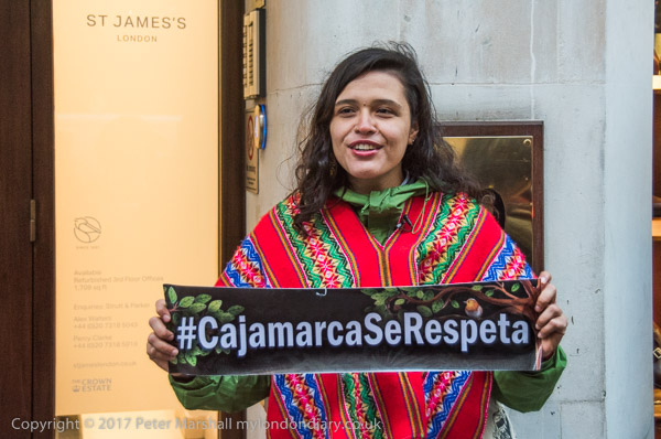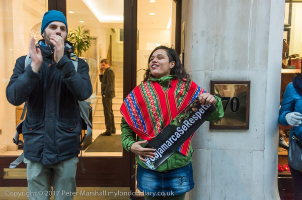 Colombian activist Camila Méndez outside Paulson Europe LLP