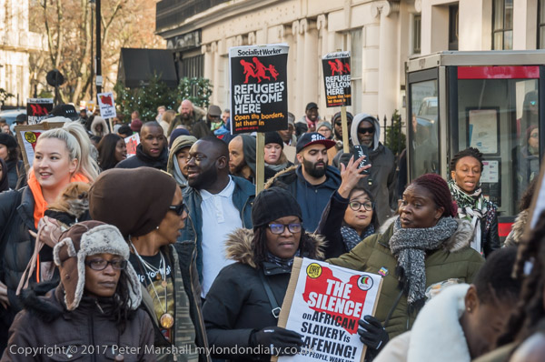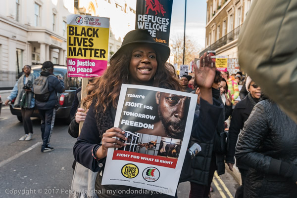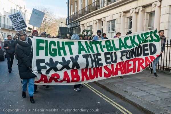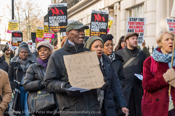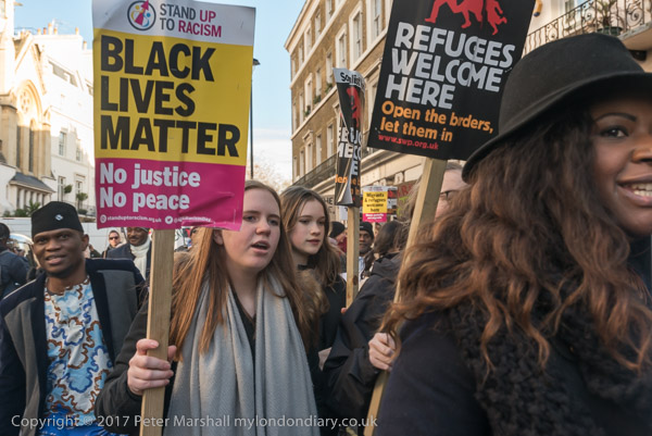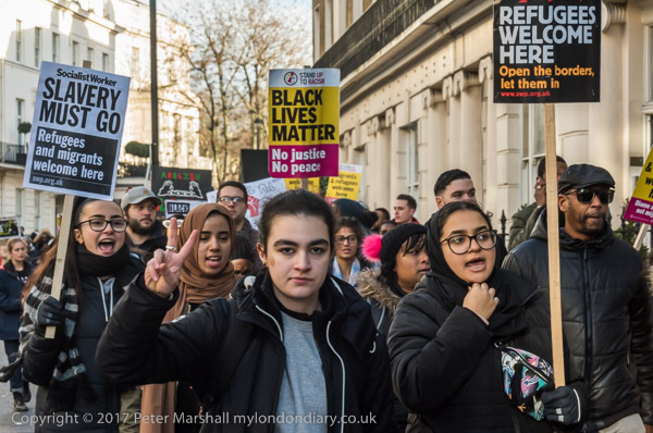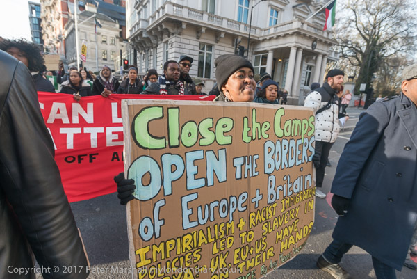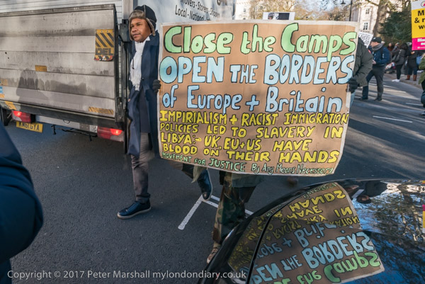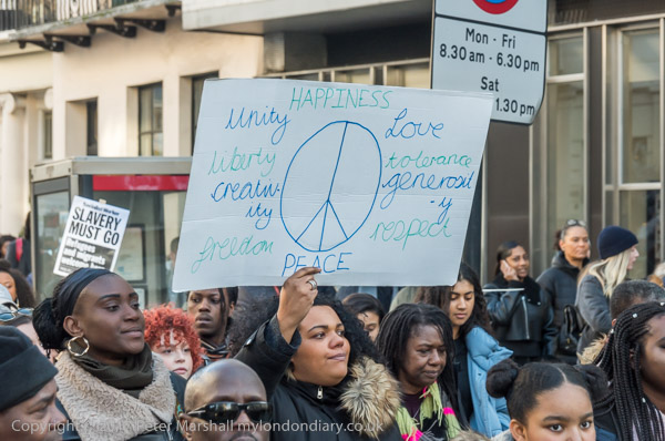 'Slavery Must Go', 'Black Lives Matter', 'Refugees Welcome Here'