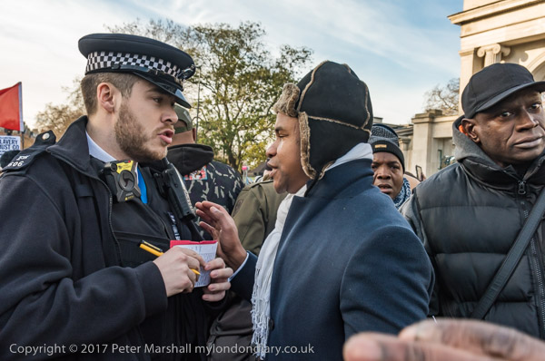 Just behind the main banner is a larger one 'Fight Anti-Blackness