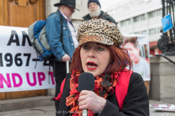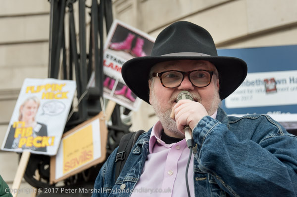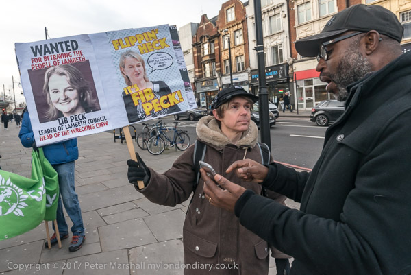 Sid Skill with two posters about Lambeth Council leader Liz Peck 'Head