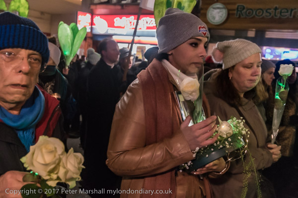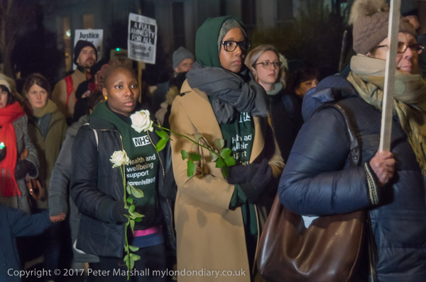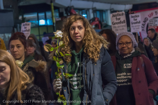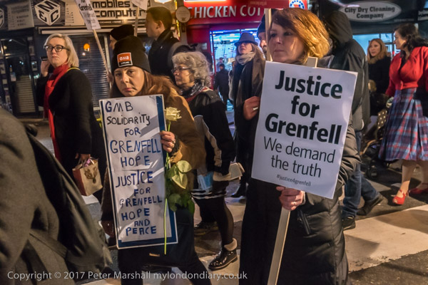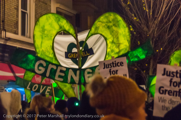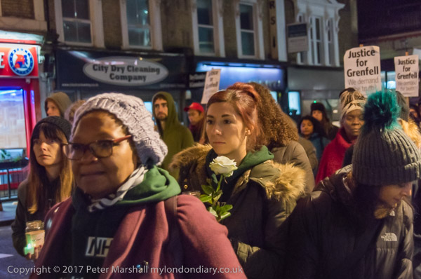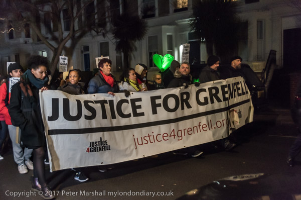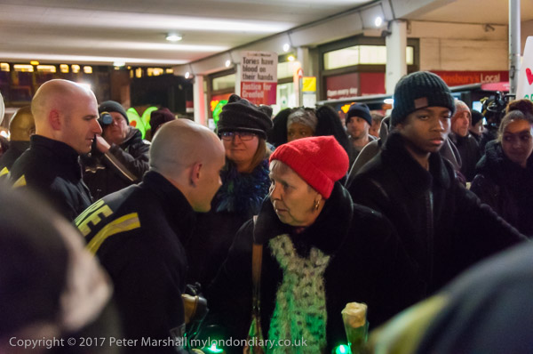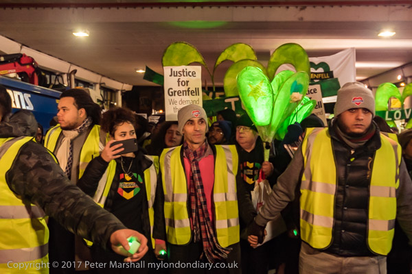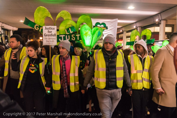 The march halted briefly on Ladbroke Grove where firefighters formed