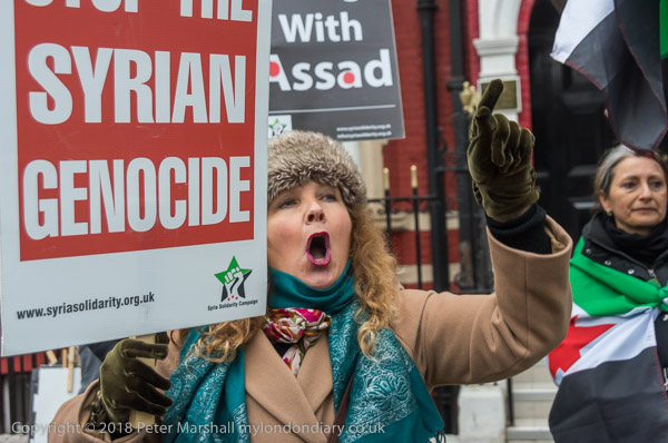 Protesters opposite the Russian Consulate called for an end to the massacres taking place now in Syria.