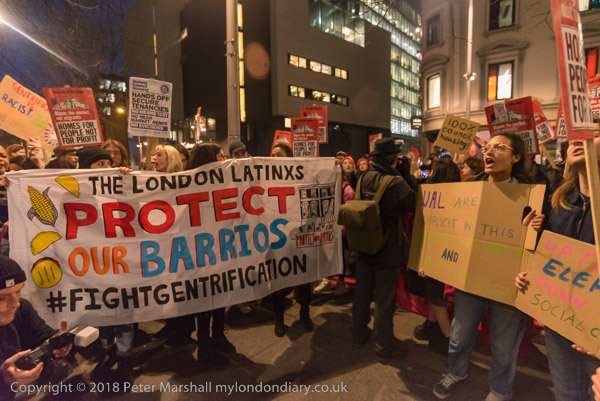 Local residents, including many from London's Latin American community and housing activists marched with traders and LCC students from the Elephant & Castle to Southwark Council's offices in Tooley St to demolish the shopping centre.