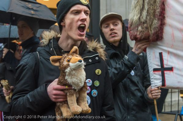 Protesters were again outside the Canada Goose flagship store in Regent St asking shoppers to boycott the store because of the horrific cruelty involved in trapping dogs for fur and raising birds for down used in the company's clothing.
