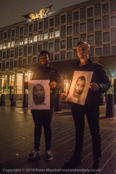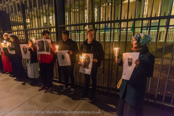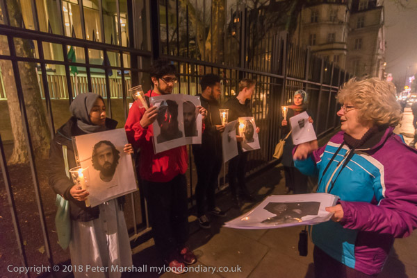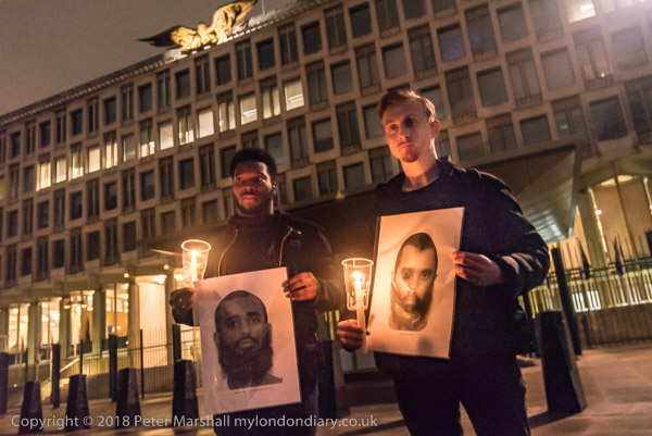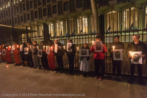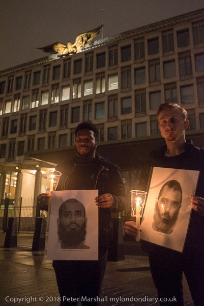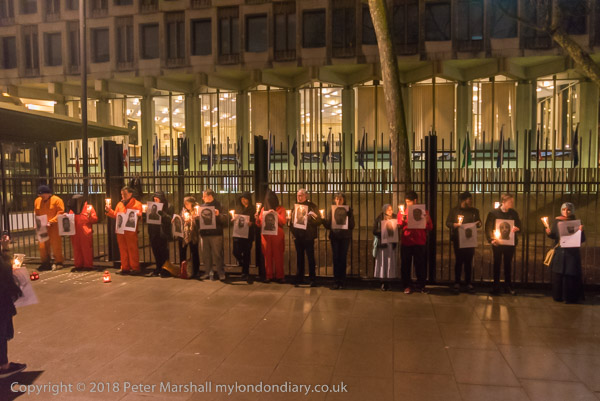 It is very dark in the area in front of the embassy - and all the