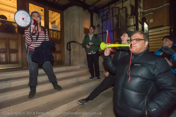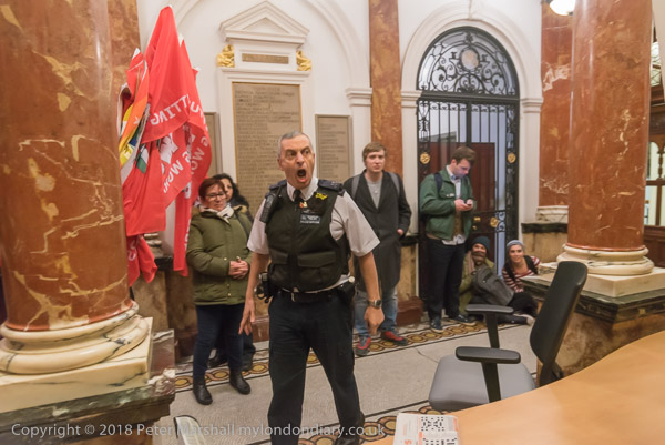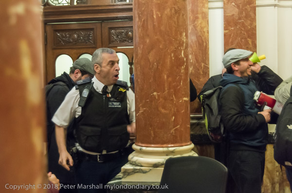 The protest continues in the foyer for a little over ten minutes